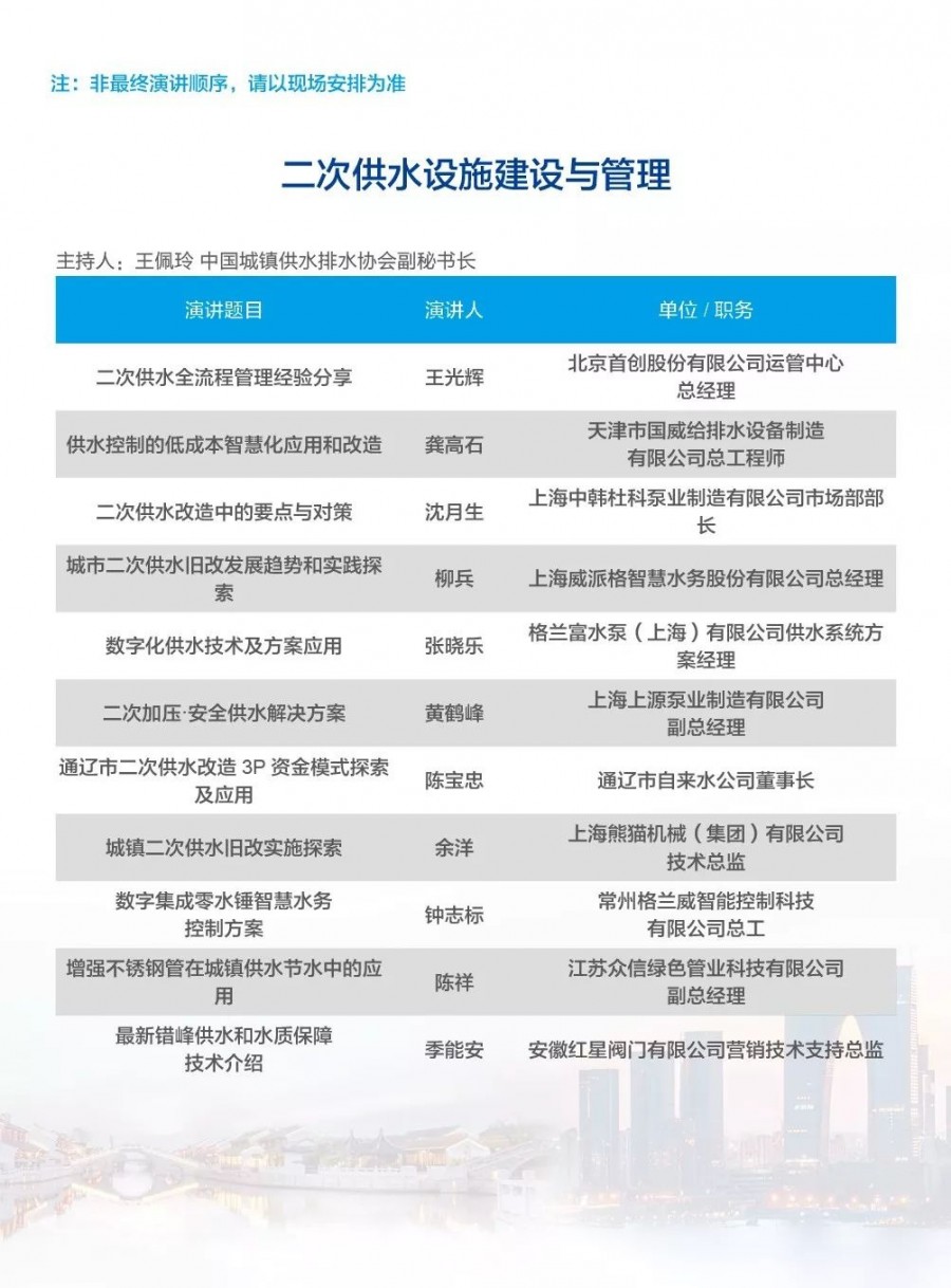 除以上分論壇外,蘇州論壇——高品質(zhì)水公共產(chǎn)品研討會、建筑節(jié)水論壇、二供節(jié)能與供水安全保障、城鎮(zhèn)水環(huán)境綜合整治與管理、中-法水務(wù)科技論壇、長三角一體化水務(wù)發(fā)展論壇等論壇議程正在確認(rèn)中……敬請期待!