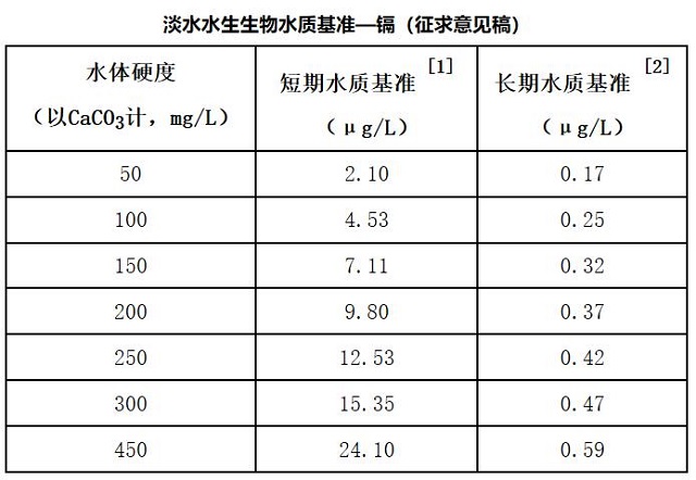 2.淡水水生生物水質(zhì)基準(zhǔn)—鎘(征求意見稿)