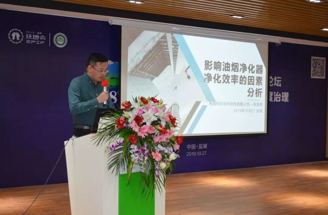 南京大衛(wèi)楊環(huán)保有限公司楊肇董事長介紹了內(nèi)風(fēng)幕循環(huán)隔離技術(shù)在油煙設(shè)備上的應(yīng)用。