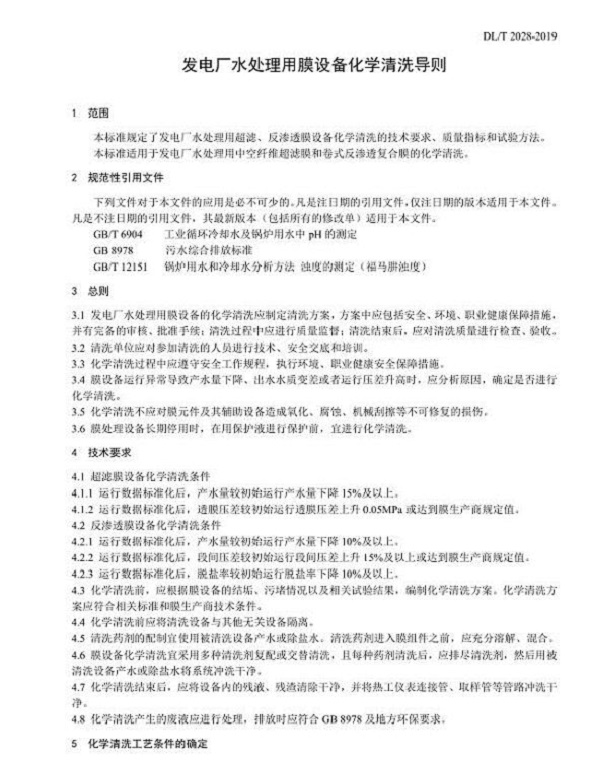 據(jù)悉,國家能源局發(fā)布《發(fā)電廠水處理用膜設(shè)備化學(xué)清洗導(dǎo)則》,10月1日起施行。詳情如下: