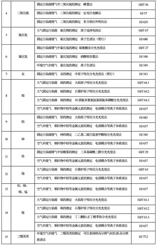 8.2.4 大氣污染物濃度監(jiān)測時的測定方法采用表5所列的方法標(biāo)準(zhǔn)。本標(biāo)準(zhǔn)實施后國家發(fā)布的污染物監(jiān)測方法標(biāo)準(zhǔn),如適用性滿足要求,同樣適用于本標(biāo)準(zhǔn)相應(yīng)污染物的測定。