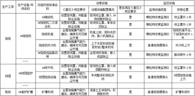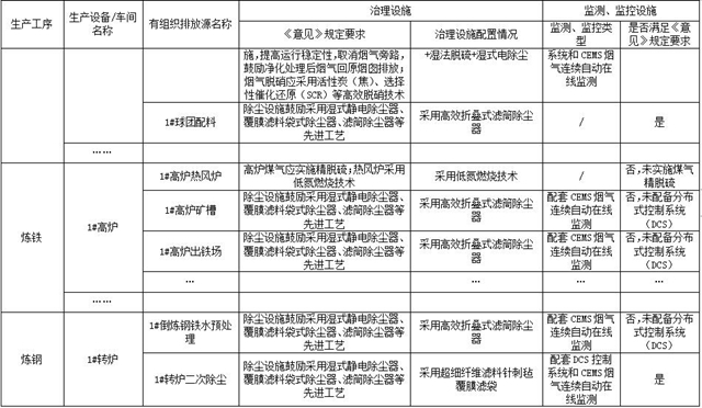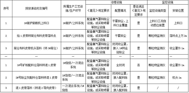按照《意見(jiàn)》和《排污許可證申請(qǐng)與核發(fā)技術(shù)規(guī)范 鋼鐵行業(yè)》(HJ846-2017)要求,對(duì)全廠相應(yīng)有組織排放源進(jìn)行全面排查,建立有組織排放源清單,明確治理技術(shù)路線和監(jiān)控措施,清單格式和內(nèi)容可參考附表1。