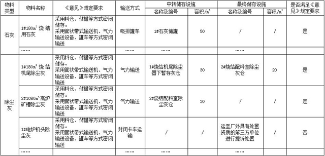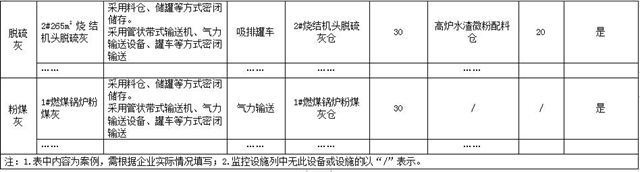 粉狀物料儲(chǔ)存和輸送設(shè)施清單及控制措施對(duì)照表(示例)