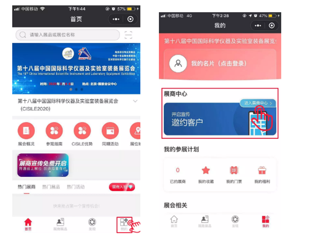 STEP 2:點(diǎn)擊「我的」—「進(jìn)入展商中心」;