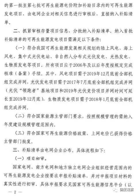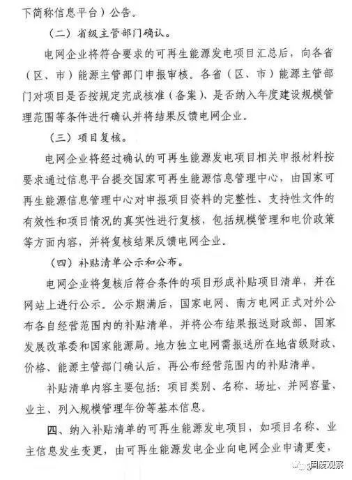 3、符合國(guó)家可再生能源價(jià)格政策,上網(wǎng)電價(jià)已獲得價(jià)格主管部門批復(fù)。根據(jù)文件要求,2020年4月30日前,應(yīng)完成第一階段補(bǔ)貼清單的審核發(fā)布工作;6月30日前,完成首批補(bǔ)貼清單的審核發(fā)布工作,并為下一批補(bǔ)貼清單審核發(fā)布做好準(zhǔn)備。