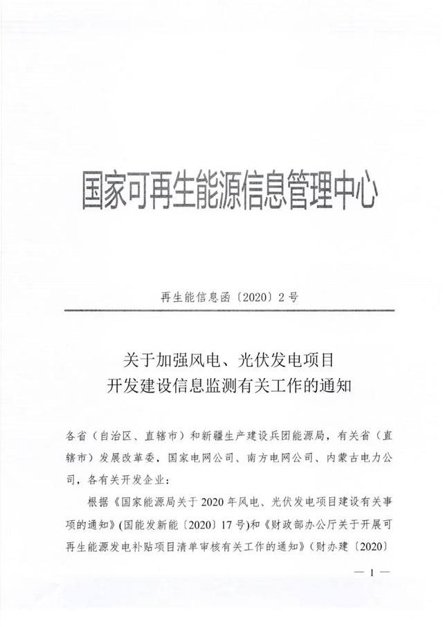 原標(biāo)題:關(guān)于加強風(fēng)電、光伏項目開發(fā)建設(shè)信息監(jiān)測有關(guān)工作的通知
