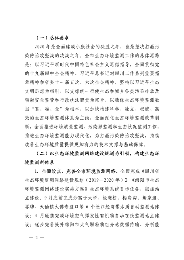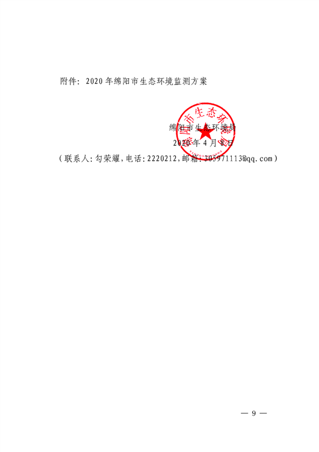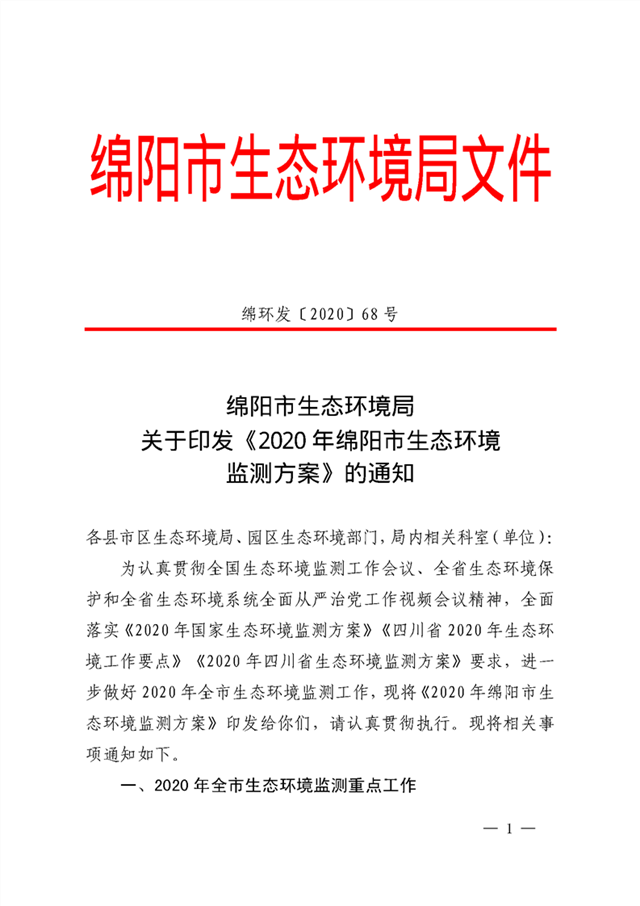 綿陽(yáng)市生態(tài)環(huán)境局關(guān)于印發(fā)《2020年綿陽(yáng)市生態(tài)環(huán)境監(jiān)測(cè)方案》的通知