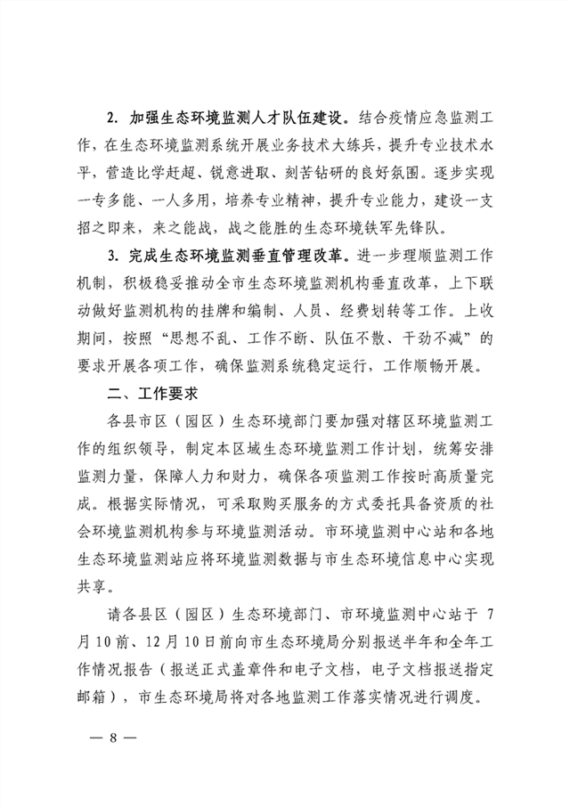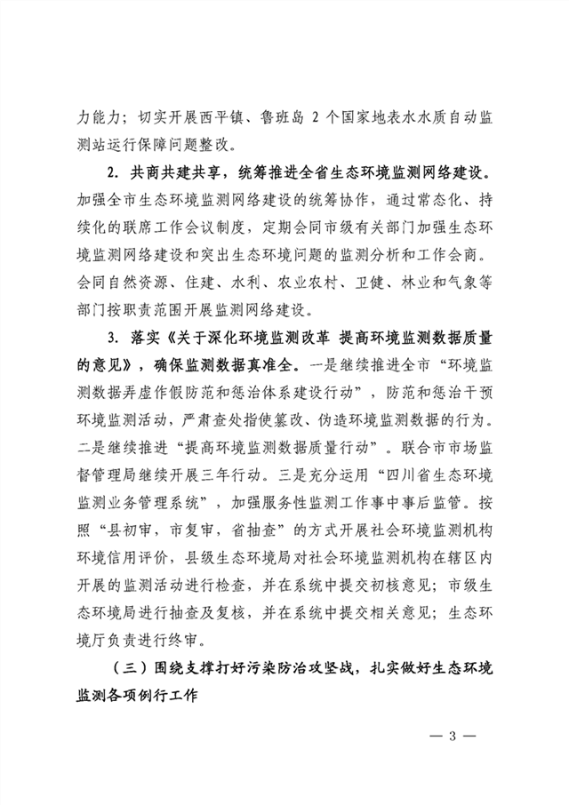 為認(rèn)真貫徹全國(guó)生態(tài)環(huán)境監(jiān)測(cè)工作會(huì)議、全省生態(tài)環(huán)境保護(hù)和全省生態(tài)環(huán)境系統(tǒng)全面從嚴(yán)治黨工作視頻會(huì)議精神,全面落實(shí)《2020年國(guó)家生態(tài)環(huán)境監(jiān)測(cè)方案》《四川省2020年生態(tài)環(huán)境工作要點(diǎn)》《2020年四川省生態(tài)環(huán)境監(jiān)測(cè)方案》要求,進(jìn)一步做好2020年全市生態(tài)環(huán)境監(jiān)測(cè)工作,現(xiàn)將《2020年綿陽(yáng)市生態(tài)環(huán)境監(jiān)測(cè)方案》印發(fā)給你們,請(qǐng)認(rèn)真貫徹執(zhí)行?,F(xiàn)將相關(guān)事項(xiàng)通知如下。