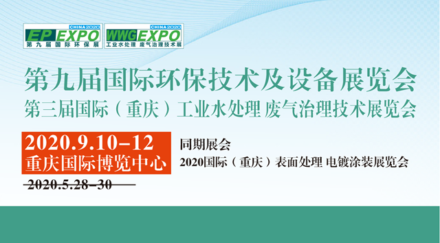 將原定于2020年5月28-30日在重慶國際博覽中心舉辦的“第九屆國際環(huán)保技術(shù)及設(shè)備展覽會(huì)”暨“第三屆國際(重慶)工業(yè)水處理 廢氣治理技術(shù)展覽會(huì),”(以下簡稱EP EXPO)延期至9月10-12日舉辦,地點(diǎn)不變。