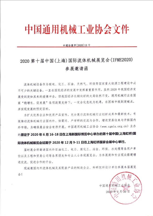 一場突如其來的疫情打亂了整個行業(yè)的節(jié)奏,作為年度流體機(jī)械行業(yè)國際性盛會,為確保海內(nèi)外展商的參展效果,保障廣大展商和觀眾的安全和健康,第十屆中國(上海)國際流體機(jī)械展覽會(IFME)主辦方中國通用機(jī)械工業(yè)協(xié)會(以下簡稱:“中通協(xié)”)決定IFME2020延期舉辦。經(jīng)過多方積極地協(xié)調(diào)與溝通,中通協(xié)宣布IFME2020遷移至全球一大會展綜合體——國家會展中心(上海), 于12月9-11日舉辦。移師新館的IFME2020戰(zhàn)略布局全面升級,輻射全中國,將再次引領(lǐng)流體機(jī)械行業(yè)轉(zhuǎn)型升級,實現(xiàn)跨越式發(fā)展。