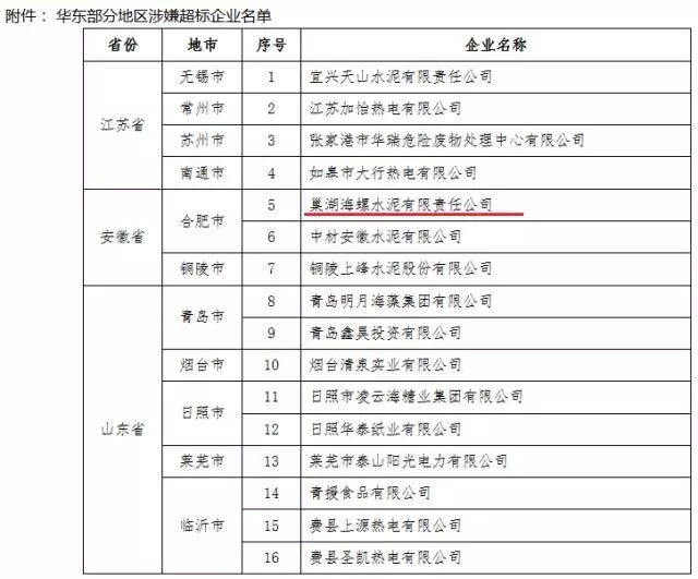 ▲10月,華東部分地區(qū)大氣污染物涉嫌超標(biāo)排放的16家企業(yè)名單