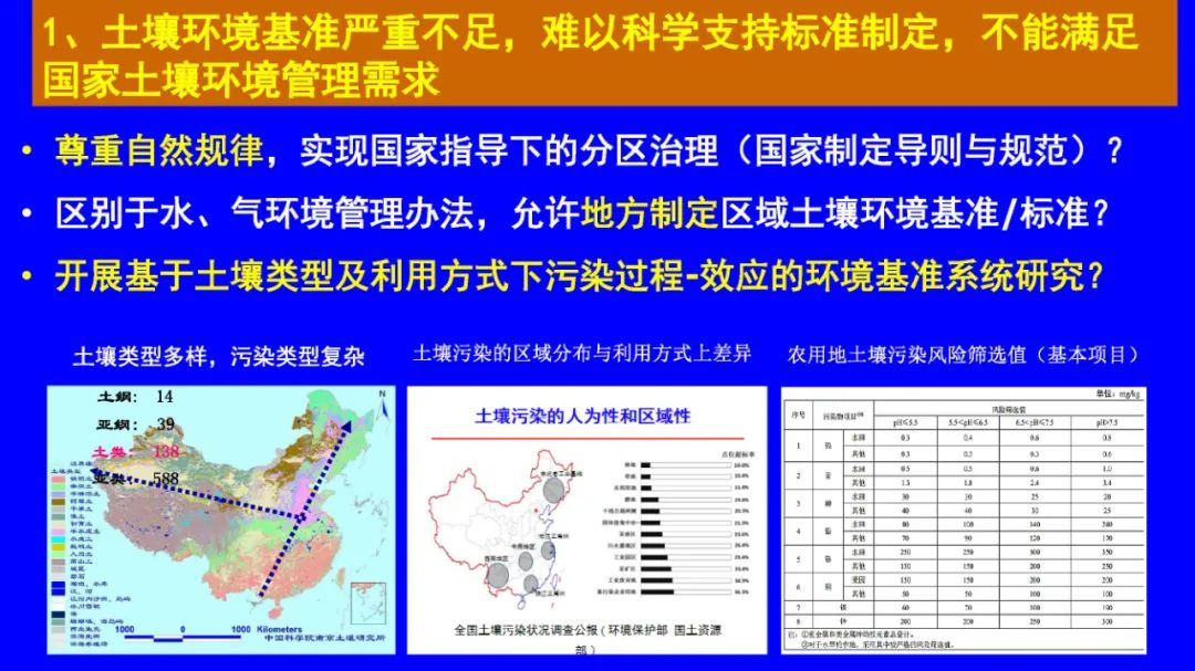 我國耕地污染量大面廣,類型多過程復雜。重點區(qū)域土壤污染突出,防治壓力巨大,重點行業(yè)土壤污染嚴重,突發(fā)事件頻發(fā)?;谝陨贤寥牢廴粳F狀,專家論述了我國土壤污染管控與修復研究發(fā)展與需求。