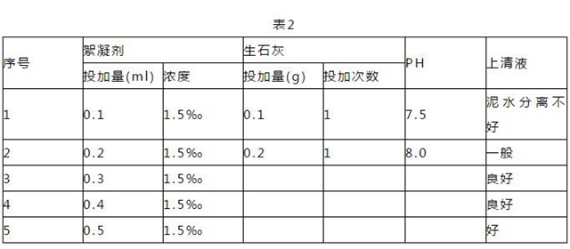 3月18日上午在專業(yè)人員的指導下,我們決定對2#氧化溝系列采用投生石灰和絮凝劑來控制氧化溝內(nèi)因污泥膨脹產(chǎn)生的褐色泡沫,投生石灰是為了殺死活性污泥中的絲狀菌(利用絲狀菌不能在堿性環(huán)境中生存的原理),投絮凝劑是為了增加活性污泥的沉降性能。首先做小試,確定生石灰和絮凝劑投加量,取2#氧化溝內(nèi)混合液1000ml,首加0.1g生石灰,測PH值為7.7,再加0.1g生石灰攪拌,測PH為8.03,小試后確定每升混合液中加0.2g生石灰,換算為每方0.2kg;然后向混合液中加1.5‰的絮凝劑從0.1ml開始加至0.5ml時,混合液的泥水分離較好,上清液變清亮,換算為每方混合液加1.5‰的絮凝劑0.5 kg。