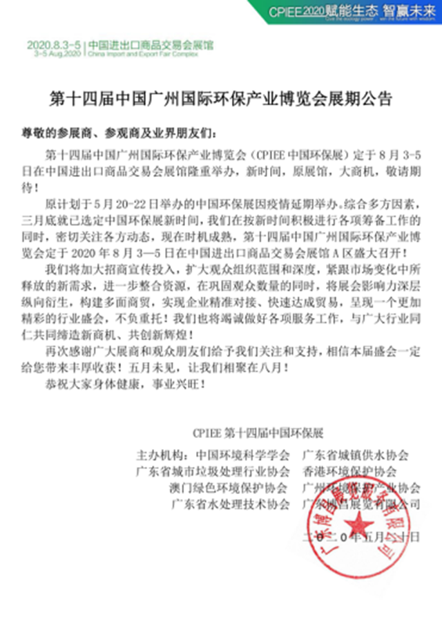 久有凌云志,攜手共前行!我們很榮幸能與廣大行業(yè)同仁共同締造新商機(jī)、共創(chuàng)新輝煌!中國(guó)環(huán)保展順勢(shì)而動(dòng),應(yīng)勢(shì)而為,現(xiàn)大展格局,成長(zhǎng)興之態(tài);以“賦能生態(tài),智贏未來(lái)”為主題,聯(lián)結(jié)綠水青山,構(gòu)建生態(tài)環(huán)保圈,為建設(shè)美麗中國(guó)而努力奮斗!5月未見(jiàn)8月聚,老地方、大市場(chǎng)、新商機(jī),8月3日—5日,聚焦廣州,第十四屆中國(guó)環(huán)保展值得期待!