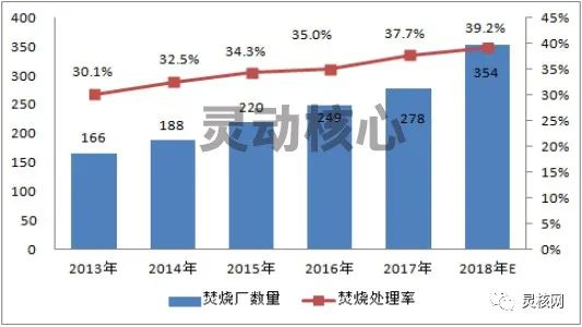 隨著國內(nèi)垃圾焚燒發(fā)電技術(shù)不斷提升,通過直接焚燒處理,對工業(yè)垃圾減量化效果明顯,目前國內(nèi)已有一批專業(yè)的從事建設(shè)、投資及運維的固廢焚燒企業(yè),工業(yè)垃圾發(fā)電也悄然興起。 據(jù)靈動核心產(chǎn)業(yè)研究中心發(fā)布的《2019-2024年中國垃圾焚燒發(fā)電行業(yè)現(xiàn)狀深度分析及前景投資分析報告》數(shù)據(jù)顯示,2018年新投入運行的生活垃圾焚燒廠超過70座,在建項目166座,擬建項目201座。2017年,我國城市生活垃圾焚燒處理量已達(dá)到7589萬噸,同比增長2.9%;此外,焚燒垃圾場數(shù)量從2010年的104座增加至2018年的354座,焚燒處理率由2010年的18.8%提高至39.2%。