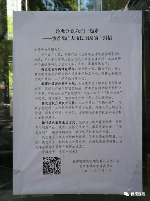 垃圾分類的宣傳和指導(dǎo)如何進(jìn)一步加強(qiáng)?藍(lán)藍(lán)天工作室記者觀察自己所在的小區(qū)發(fā)現(xiàn),設(shè)了分類垃圾桶,旁邊沒有專業(yè)指導(dǎo)人員,居民分不分類、分得對不對,基本全憑自覺。上海市剛推行垃圾分類的時(shí)候,經(jīng)常有志愿者站在垃圾桶旁問前來投放的居民“你是什么垃圾”。為啥北京很多小區(qū)目前沒人問這樣的問題?國務(wù)院發(fā)展研究中心資源與環(huán)境政策研究所副所長常紀(jì)文表示,從5月1日《條例》開始執(zhí)行后,他天天去附近小區(qū)拍照檢查。總體看來垃圾分類已經(jīng)起步了,各小區(qū)基本都配備了廚余垃圾桶等,但仍然存在一些問題。例如,部分小區(qū)內(nèi)沒有宣傳橫幅,分類垃圾桶邊沒有配備專人進(jìn)行指導(dǎo)監(jiān)督。一些小區(qū)宣傳和指導(dǎo)不到位,導(dǎo)致居民有分類意識,但缺乏分類知識。“我在不少小區(qū)看到大家把外賣餐盒跟廚余垃圾扔在一起,但它屬于使用過的、沾了菜湯油污的塑料類制品,應(yīng)該投放到其他垃圾桶中。”常紀(jì)文說。在有的小區(qū),為保證每個(gè)分類垃圾桶旁都有指導(dǎo)人員,取消了一些垃圾桶,讓居民走到較遠(yuǎn)的投放點(diǎn)扔垃圾。常紀(jì)文表示,他觀察到一些小區(qū)內(nèi)垃圾桶分布不均勻,有些樓棟下缺少廚余垃圾桶,有些沒有其他垃圾桶,“至少應(yīng)該以某種形式讓居民知曉,小區(qū)內(nèi)哪里有對應(yīng)的分類垃圾桶,方便精準(zhǔn)投放?!?/span>劉建國認(rèn)為,現(xiàn)階段,應(yīng)進(jìn)一步加大宣傳教育和組織動員力度,讓垃圾分類真正“熱起來”;層層落實(shí)各級政府相關(guān)職能部門職責(zé),特別是切實(shí)落實(shí)管理責(zé)任人責(zé)任,將壓力和責(zé)任傳導(dǎo)到每個(gè)居民,讓垃圾分類“硬起來”;統(tǒng)籌疫情防控和垃圾分類兩項(xiàng)工作,讓二者有機(jī)結(jié)合,互相促進(jìn),讓垃圾分類“動起來”;北京的黨政機(jī)關(guān)、高??蒲性核?、企業(yè)總部、社會組織密集,應(yīng)帶頭做好源頭減量和垃圾分類,為居民作出表率、增添信心,讓垃圾分類“亮起來”。“未來,要從執(zhí)法保障、政策激勵、長效機(jī)制、科學(xué)管理、多元共治、科技支撐等不同層面,不斷完善和優(yōu)化垃圾分類投放、收集、運(yùn)輸、處理全鏈條,倒逼生產(chǎn)生活環(huán)節(jié)源頭減量,分類物品物盡其用各得其所,降低垃圾分類的綜合社會成本,促進(jìn)居民養(yǎng)成良好習(xí)慣,提升社會文明水平。”劉建國說。上圖:北京市有關(guān)部門致市民的一封信。(劉毅攝) 如何避免運(yùn)輸和處置中出現(xiàn)混裝混運(yùn)現(xiàn)象?不少居民表示,推行生活垃圾強(qiáng)制分類以來,自己所在的小區(qū),垃圾分類的宣傳力度明顯加強(qiáng),做到了分類投放、分類運(yùn)輸。然而,也有居民表示,自己辛辛苦苦分好類,甚至把快遞盒上的膠帶都刮下來按類別投放,結(jié)果發(fā)現(xiàn)垃圾車還是把所有垃圾一股腦混倒在一起運(yùn)走。劉建國表示,“前端分類,后端混合”是個(gè)廣受詬病的老問題,實(shí)際上是垃圾分類系統(tǒng)前后端不配套造成的。《北京市生活垃圾管理?xiàng)l例》中約束的一個(gè)主要對象,是從事垃圾收集運(yùn)輸處理的企業(yè),處罰門檻很低,處罰力度很大,就是為了解決先分后混、混裝混運(yùn)的問題。“居民看到混裝混運(yùn)現(xiàn)象,可以馬上投訴,督促企業(yè)做好分類收集運(yùn)輸處理。當(dāng)然,咱們自己也要做好分類投放,不能以混裝混運(yùn)為借口而不履行義務(wù)。只有大家各負(fù)其責(zé),才能徹底杜絕混裝混運(yùn)現(xiàn)象?!眲⒔▏f。常紀(jì)文認(rèn)為,前端后端匹配才符合垃圾分類的目的。對此需要標(biāo)本兼治:治本,需建設(shè)相匹配的廚余垃圾處置設(shè)施以及干垃圾的焚燒或填埋設(shè)施。治標(biāo),應(yīng)采取嚴(yán)格的處罰措施,沒有處罰,小區(qū)物業(yè)和環(huán)衛(wèi)部門往往會存有僥幸心理,使垃圾分類工作停滯不前;只有嚴(yán)格執(zhí)行懲處措施,才能對垃圾分類執(zhí)行方起到震懾作用,后端的各個(gè)環(huán)節(jié)才能順暢配合。為更好解決后端混運(yùn)問題,常紀(jì)文還建議,改良垃圾運(yùn)輸車輛?!皻W洲有許多垃圾分類車輛是能同時(shí)運(yùn)輸兩種垃圾的,我們也可以在設(shè)計(jì)方面做些改動,在車輛內(nèi)部進(jìn)行分隔,讓一輛車既可以運(yùn)廚余垃圾也可以運(yùn)其他垃圾,降低成本的同時(shí),方便操作?!?/span>劉建國認(rèn)為,疫情防控與垃圾分類這兩件事并不沖突?,F(xiàn)在疫情防控已經(jīng)進(jìn)入到常態(tài)化階段,可以把疫情防控中形成的好經(jīng)驗(yàn)好做法好機(jī)制,如社區(qū)精細(xì)化管理、居民的規(guī)則意識和衛(wèi)生習(xí)慣、鄰里之間互相幫助互相監(jiān)督等,順勢轉(zhuǎn)化為垃圾分類的推動力。來源 | 人民日報(bào)中央廚房·藍(lán)藍(lán)天工作室