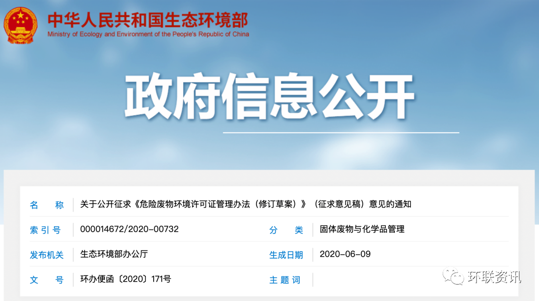 危險(xiǎn)廢物環(huán)境許可證管理辦法(修訂草案)(征求意見稿)