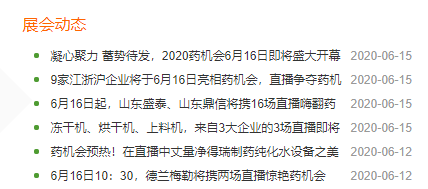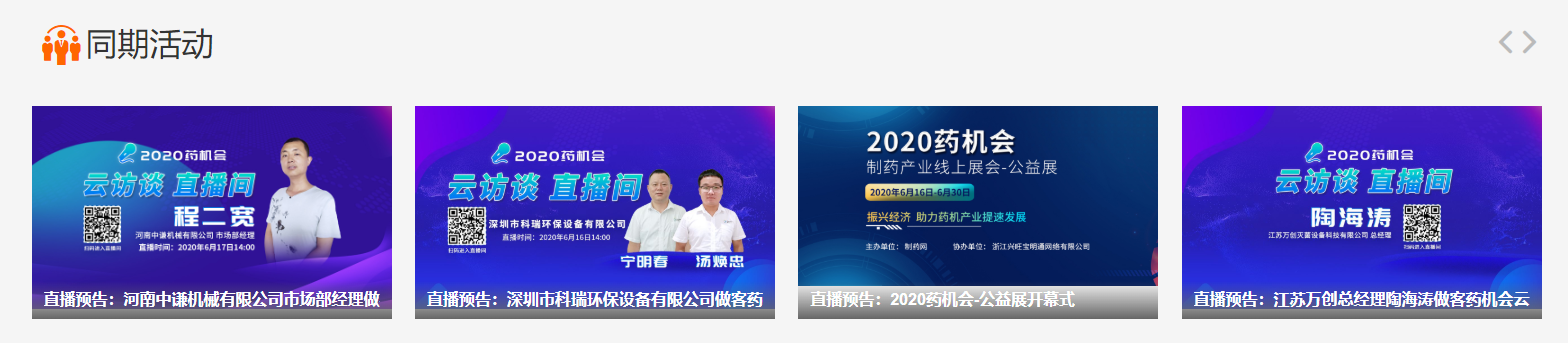 在線展會。打破時間和空間限制,低成本,開展期間,展商可24h不限時段發(fā)布直播信息,觀眾亦可隨時在線看展。(←點擊進入2020藥機會展館)