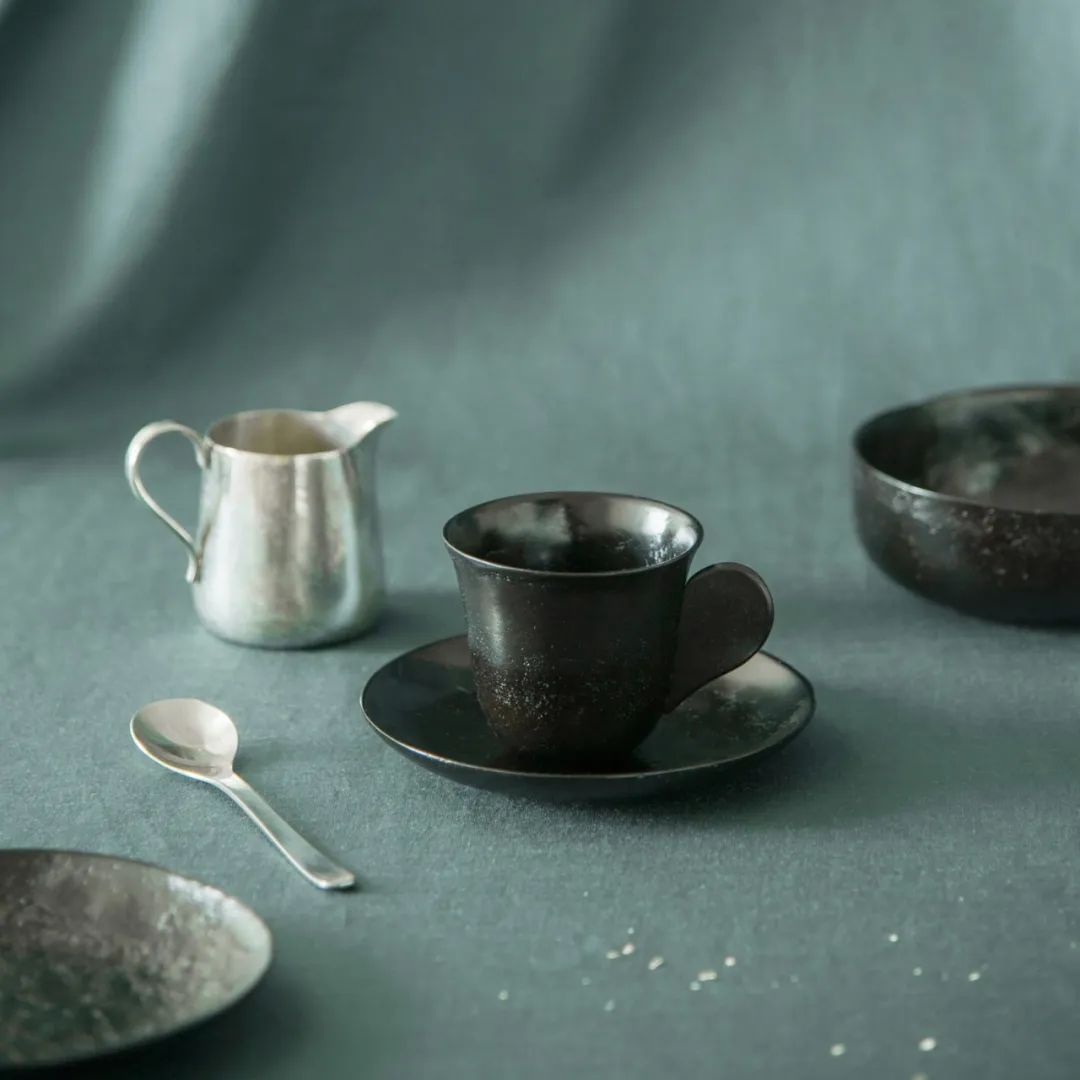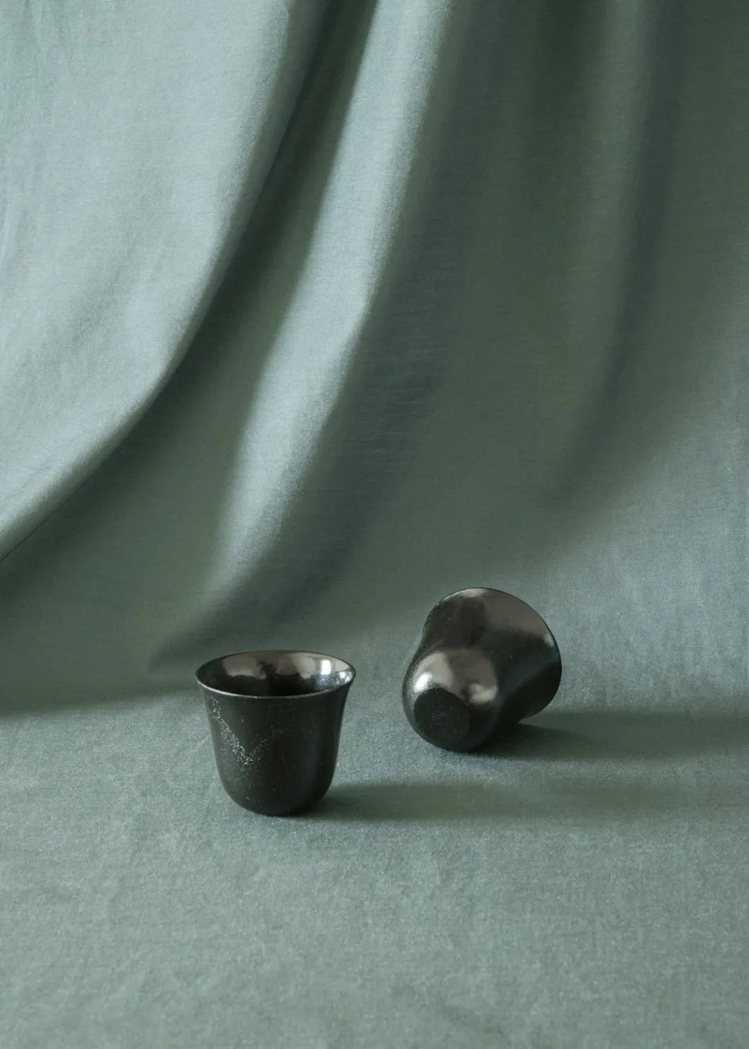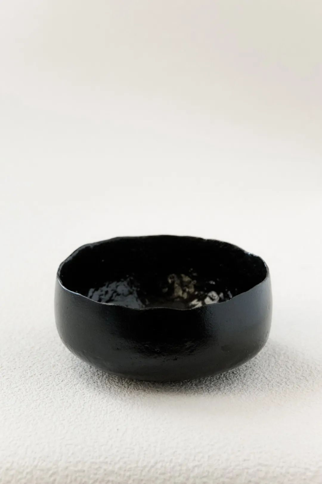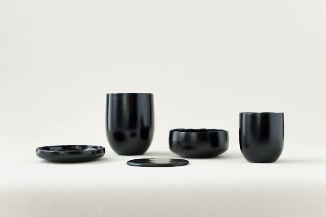 器皿的黑色本體,來自食物碳化后的本真色彩,這背后也別有一番深意。Araki篤信萬物有靈,把食物碳化的過程,仿佛是為那些被拋棄的生命舉行一場莊嚴儀式。垃圾焚化后,轉世成為美麗的造物,也是這個系列名字“Anima”(靈魂)的來源。