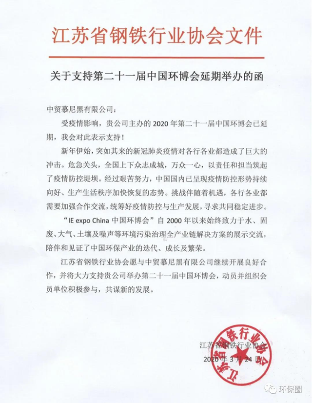 我們深信和企盼”疫情防控“很快將會解除;并繼續(xù)努力做好各項(xiàng)配套工作,一如既往的全力支持“第21屆中國環(huán)博會“的成功舉辦!