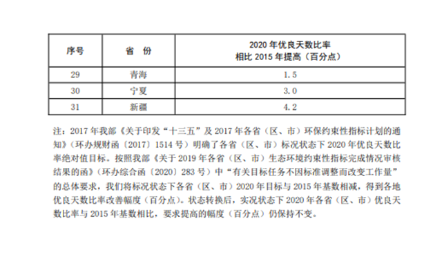 3.各省(區(qū)、市)2020年優(yōu)良天數(shù)比率改善任務(wù)
