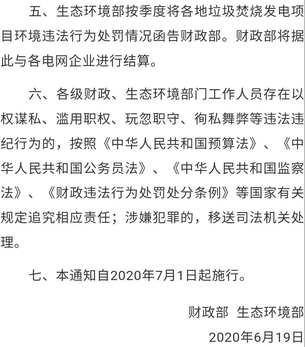 日前,兩部委聯(lián)合印發(fā)《財政部 生態(tài)環(huán)境部關于核減環(huán)境違法垃圾焚燒發(fā)電項目可再生能源電價附加補助資金的通知》(財建[2020]199號,以下簡稱“核減通知” ),自2020年7月1日起施行。