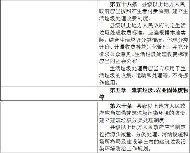 明確了建筑垃圾及農(nóng)業(yè)廢棄物的監(jiān)管主體,要求建立建筑垃圾分類處理制度,鼓勵建筑垃圾資源化利用。