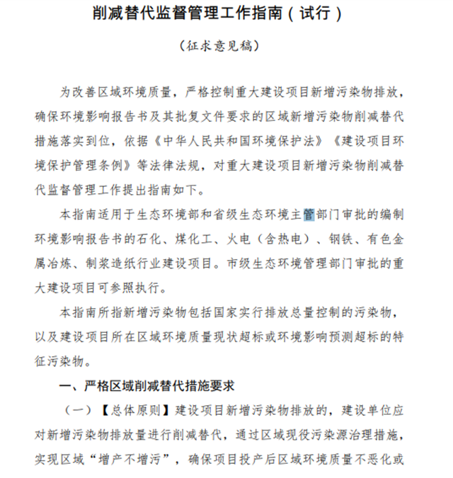 2.重大建設(shè)項目新增污染物排放量削減替代監(jiān)督管理工作指南(試行)(征求意見稿)