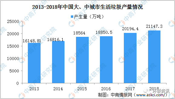 我國是人口大國,也是垃圾產(chǎn)生大國,且隨著經(jīng)濟穩(wěn)步發(fā)展、民眾生活消費水平、城鎮(zhèn)化率不斷提高,生活垃圾產(chǎn)生量持續(xù)走高,2018年,全國200個大、中城市生活垃圾產(chǎn)生量21147.3萬噸。