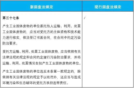 4.新增了委托他人運輸、利用、處置工業(yè)固廢的,應(yīng)對受托方進行審查,否則承擔(dān)連帶責(zé)任的要求