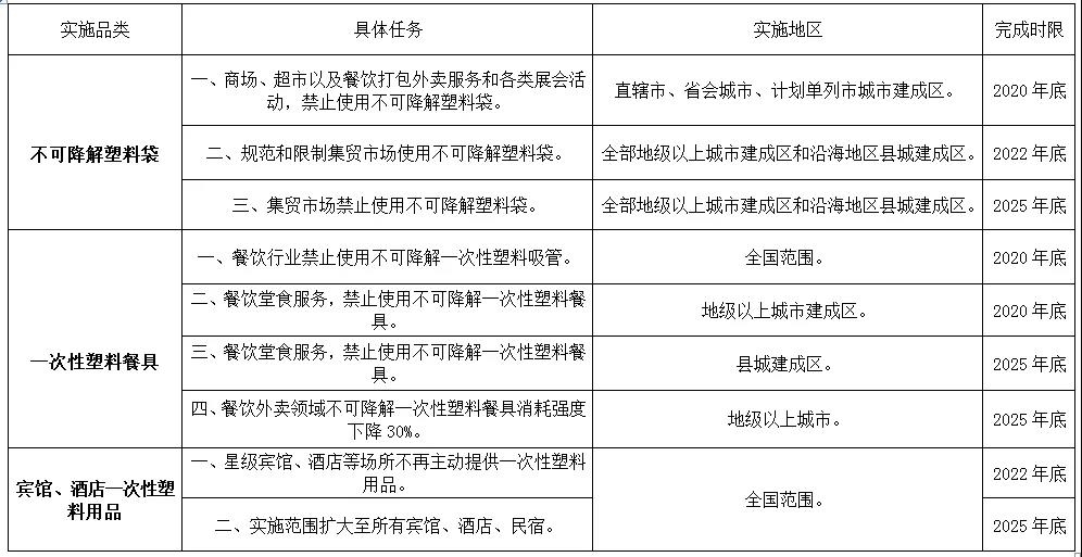 2020年4月,第十三屆全國(guó)人民代表大會(huì)常務(wù)委員會(huì)第十七次會(huì)議修訂通過了《中華人民共和國(guó)固體廢物污染環(huán)境防治法》(以下簡(jiǎn)稱《固廢法》),對(duì)商務(wù)領(lǐng)域塑料污染治理賦予了新的職責(zé),提出了新的要求。今年上半年 ,發(fā)展改革委、生態(tài)環(huán)境部等部門先后印發(fā)了《關(guān)于進(jìn)一步加強(qiáng)塑料污染治理的意見》(發(fā)改環(huán)資〔2020〕80號(hào))、《關(guān)于扎實(shí)推進(jìn)塑料污染治理工作的通知》(發(fā)改辦環(huán)資〔2020〕1146號(hào))等政策文件,對(duì)商務(wù)領(lǐng)域禁塑限塑階段性任務(wù)提出了明確要求(詳見附件)。各地商務(wù)主管部門要聚焦商場(chǎng)、超市、集貿(mào)市場(chǎng)、餐飲、住宿、展會(huì)、電子商務(wù)等重點(diǎn)領(lǐng)域,準(zhǔn)確把握不同塑料用品在實(shí)施區(qū)域、時(shí)間節(jié)點(diǎn)等具體禁塑限塑要求,認(rèn)真抓好貫徹落實(shí)。