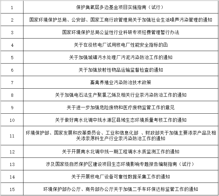 擬廢止的規(guī)章:汽車排氣污染監(jiān)督管理辦法(〔90〕環(huán)管字第 359號(hào));建設(shè)項(xiàng)目竣工環(huán)境保護(hù)驗(yàn)收管理辦法(原國家環(huán)境保護(hù)總局令第 13 號(hào))