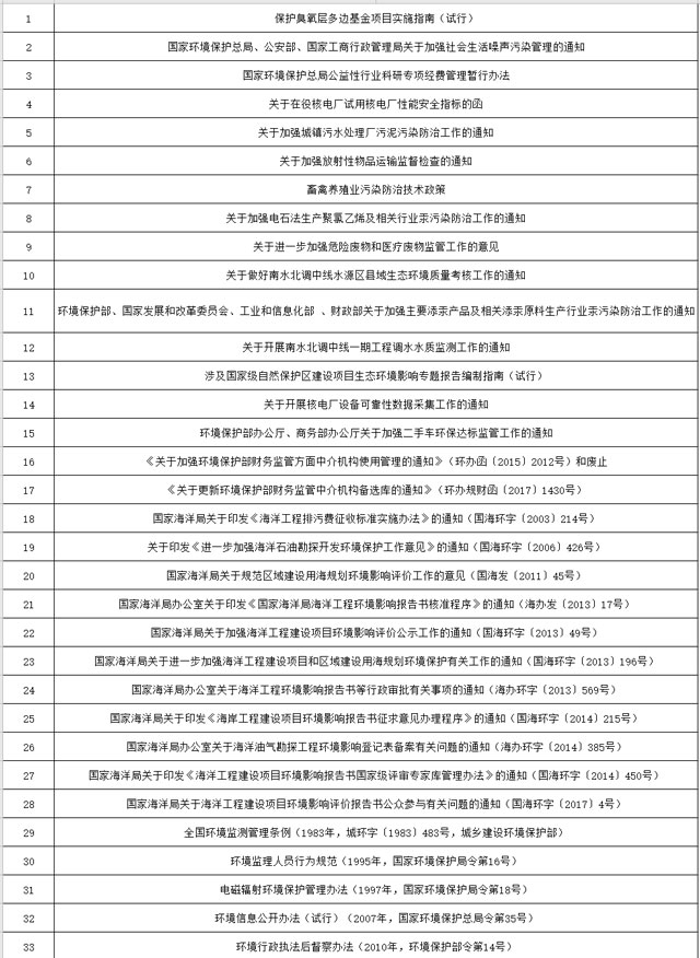 33、環(huán)境信息公開辦法(試行)(2007年,國家環(huán)境保護(hù)總局令第35號(hào))