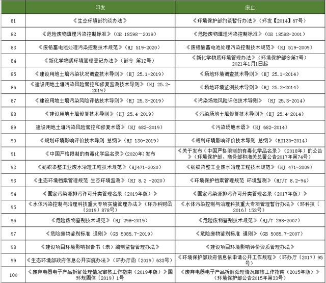 本文簡(jiǎn)要回顧一下,生態(tài)環(huán)境部發(fā)布的那些關(guān)于廢止規(guī)章條例/政策標(biāo)準(zhǔn)的信息: