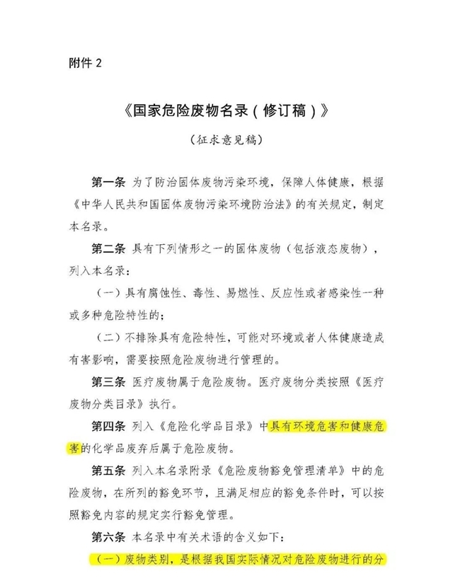 《國(guó)家危險(xiǎn)廢物名錄(修訂稿)》(二次征求意見(jiàn)稿)