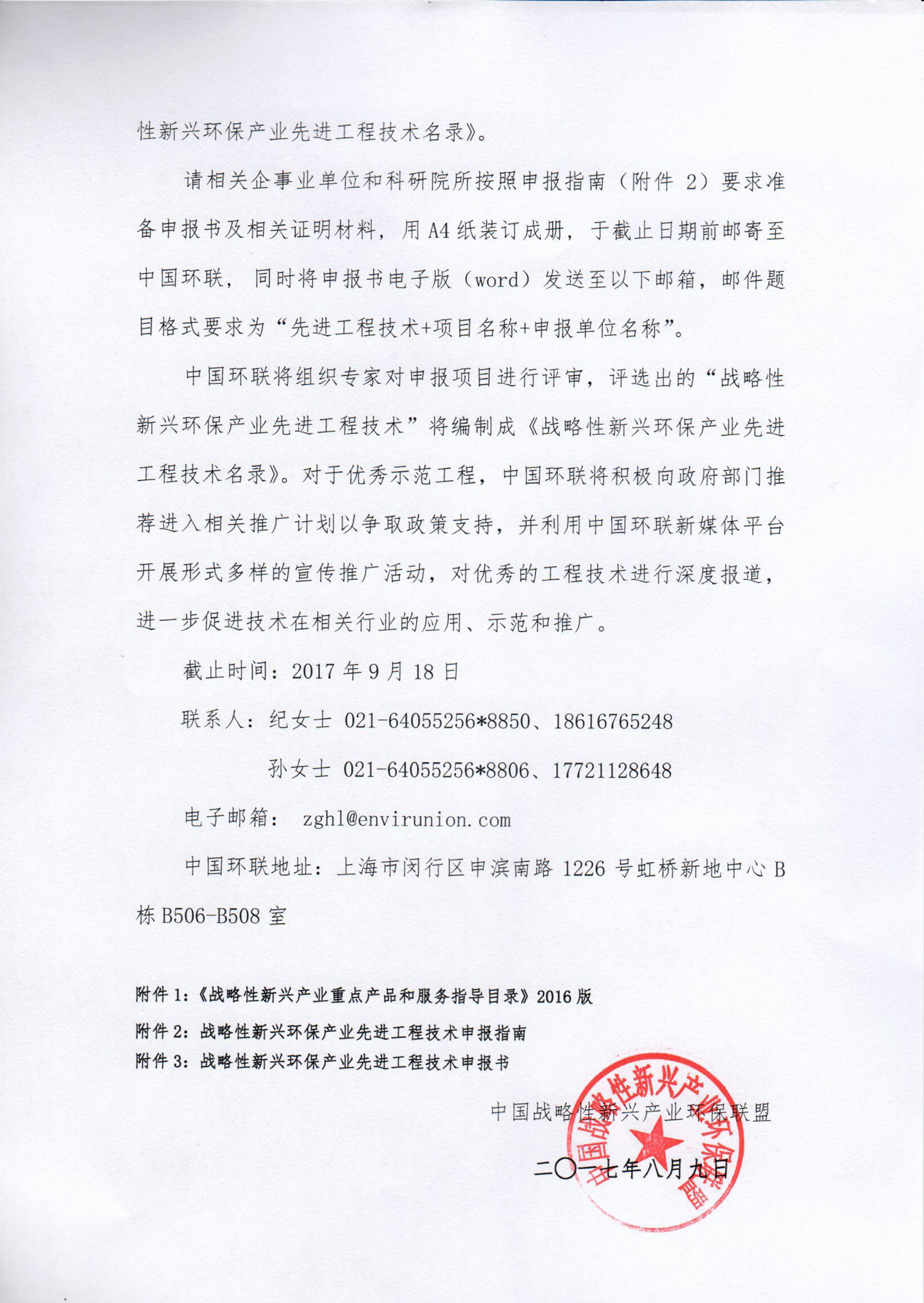 請(qǐng)相關(guān)企事業(yè)單位和科研院所按照申報(bào)指南(附件2)要求準(zhǔn)備申報(bào)書及相關(guān)證明材料, 用A4紙裝訂成冊(cè), 于截止日期前郵寄至中國(guó)環(huán)聯(lián), 同時(shí)將申報(bào)書電子版(word)發(fā)送至以下郵箱,郵件題目格式要求為“先進(jìn)工程技術(shù)+項(xiàng)目名稱+申報(bào)單位名稱”。