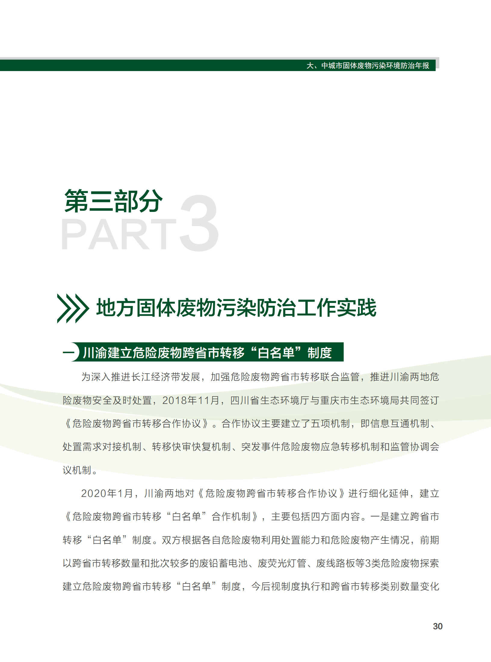 《2020年全國大、中城市固體廢物污染環(huán)境防治年報》發(fā)布,年報表示,黨中央、國務院高度重視固體廢物污染環(huán)境防治工作。