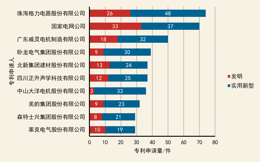 中國企業(yè)在該技術(shù)領(lǐng)域?qū)@暾堃詫嵱眯滦蜑橹鳎蟛糠制髽I(yè)實用新型專利申請量占比60%以上,企業(yè)類型集中于電氣企業(yè),以機(jī)械噪聲控制居多。