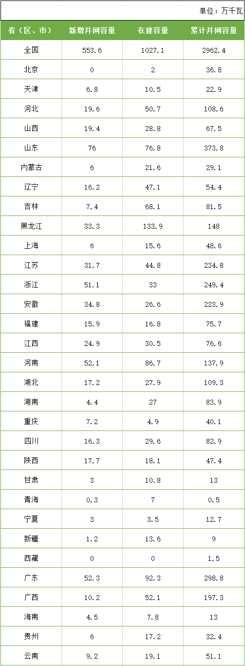 2020年各?。▍^(qū)、市)生物質發(fā)電建設情況