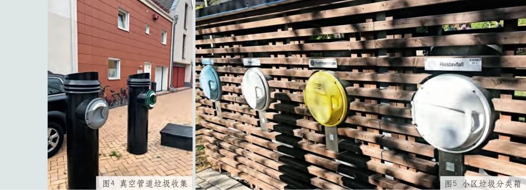 這類垃圾袋在超市、便利店、回收中心隨處可取。此外,管理部門在社區(qū)設(shè)有回收站,規(guī)模較大的區(qū)域設(shè)有回收中心,用于回收大件廢物。回收中心還安排有咨詢?nèi)藛T,引導(dǎo)前來丟棄廢物的市民按分類處置廢物。在哈馬碧和皇家海港新區(qū)等一些新建的社區(qū),已經(jīng)使用了真空管道等先進(jìn)的垃圾分類收集系統(tǒng)(圖 4)。