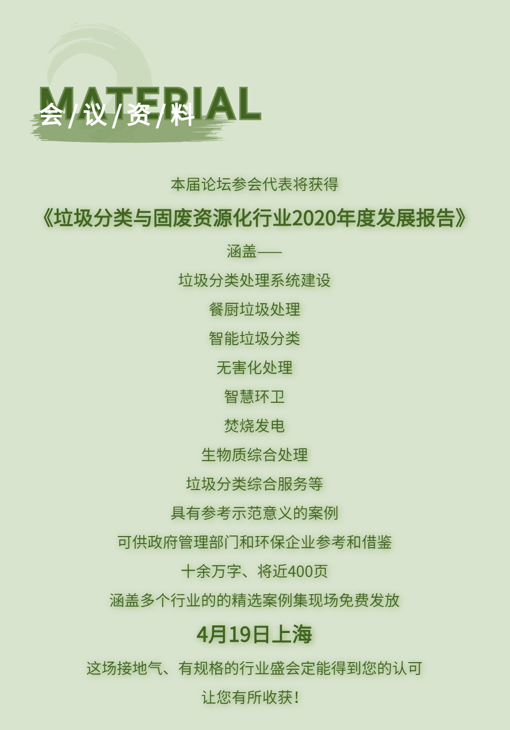 中國環(huán)聯(lián)將于2021年4月19日在上海舉辦第八屆固廢資源化高峰論壇,論壇主題“垃圾資源化,助力碳中和”。將邀請生活垃圾分類、廚余垃圾處理、垃圾焚燒發(fā)電、智慧環(huán)衛(wèi)管理、低碳技術(shù)應用等領(lǐng)域卓越企業(yè)代表,高等院校資深專家及政府官員參加,解讀最新政策趨勢、分析市場特點及行業(yè)技術(shù)焦點、分享創(chuàng)新業(yè)務模式與經(jīng)營理念,為固廢資源化貢獻力量。期待您的參與,因為有您,論壇更加精彩!