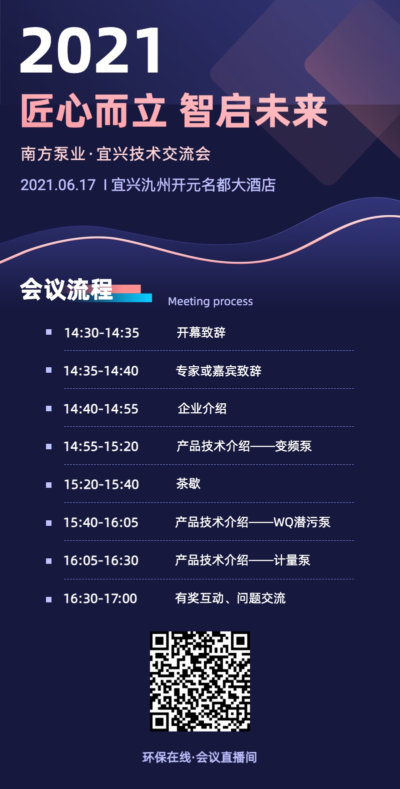 本屆技術交流會承上啟下,又將帶來哪些干貨?鎖定“匠心而立 智啟未來”南方泵業(yè)2021年宜興地區(qū)技術交流會,鎖定宜興環(huán)保成,鎖定環(huán)保在線,6月17日,咱們不見不散!