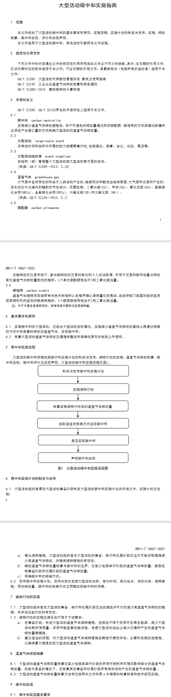 本文件規(guī)定了大型活動(dòng)碳中和的基本要求和原則、實(shí)施流程、實(shí)施計(jì)劃的制定與發(fā)布、實(shí)施、排放核算、碳中和實(shí)現(xiàn)、評(píng)價(jià)和實(shí)現(xiàn)聲明。