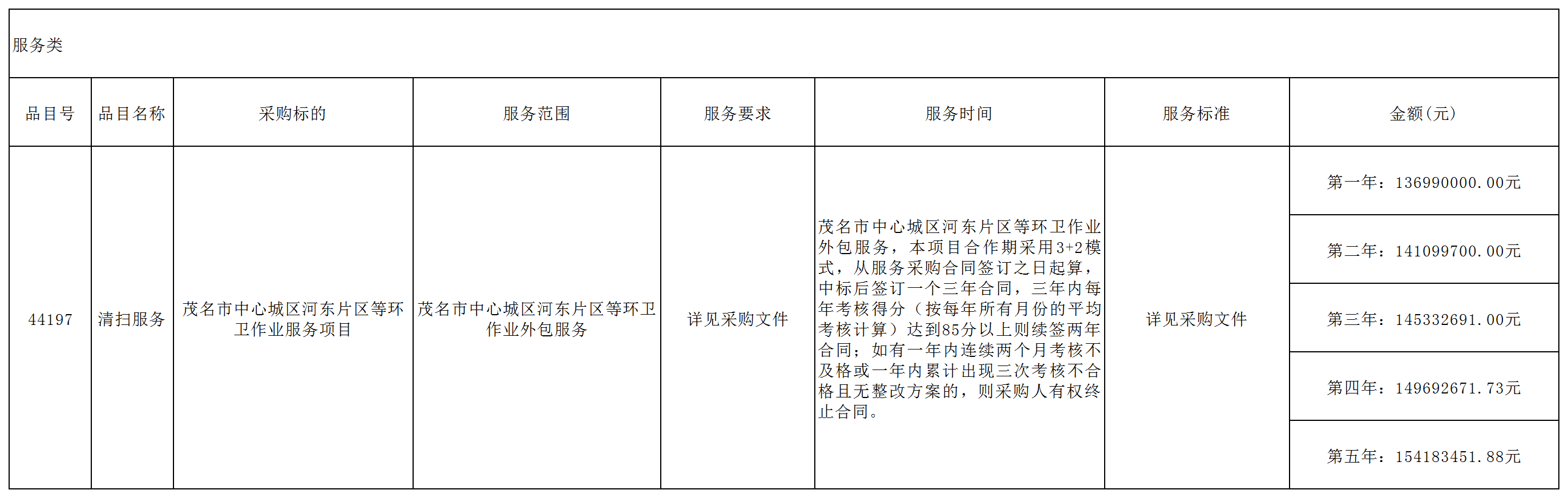 原標(biāo)題:茂名市茂南區(qū)城市管理和綜合執(zhí)法局茂名市中心城區(qū)河?xùn)|片區(qū)等環(huán)衛(wèi)作業(yè)服務(wù)項(xiàng)目(采購(gòu)編號(hào):ZC21N06N0881)中標(biāo)結(jié)果公告