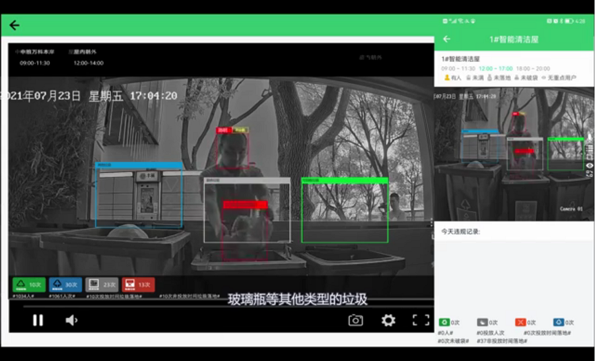 AI云上督導(dǎo)智能體系可以安裝到任意普通垃圾房?jī)?nèi),通過(guò)AI身份識(shí)別攝像頭,可以精準(zhǔn)識(shí)別垃圾種類(lèi)、質(zhì)量、數(shù)量,時(shí)間等投放信息,確保分類(lèi)質(zhì)量。同時(shí),利用監(jiān)控?cái)z像頭信息化后臺(tái)連接還可進(jìn)行遠(yuǎn)程語(yǔ)音督導(dǎo),一個(gè)督導(dǎo)員可管理多個(gè)投放點(diǎn),有效降低人工成本,減少違規(guī)投放行為,提高分類(lèi)質(zhì)量。