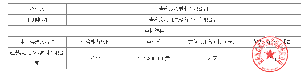 青海發(fā)投堿業(yè)有限公司熱電車間2#、3#鍋爐布袋除塵器更換項目(設備、材料、貨物(技術服務))中標結果公告