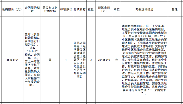 無錫市惠山經開區(qū)(長安街道)垃圾分類小區(qū)服務外包采購項目公開招標