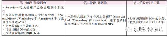 NEWs發(fā)展的終極目標是在同一污水處理廠內(nèi)實現(xiàn)營養(yǎng)物、能源和水三位一體生產(chǎn)。Vallei & Eem 水務(wù)局計劃以Amersfoort污水處理廠為案例,探求新技術(shù)與新工藝,以使污水廠至少能達到能量自給自足的水平。具體目標是2014年Amersfoort污水廠將以能量工廠方式運行,除能量回收外,營養(yǎng)物(N、P)也予以回收利用。同時Vallei&Eem水務(wù)局與荷蘭應(yīng)用水研究基金會(STOWA)已開始執(zhí)行Omzet-Amersfoort合作計劃(2011——2016),這一計劃主要在Amersfoort污水廠中實施,將其轉(zhuǎn)化為能源與資源回收工廠。其預(yù)期結(jié)果見下表。