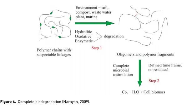 其理由是,人們腦子中的 “降解” 概念是在來源于對(duì)自然的觀察,例如木材等有機(jī)體可以被自然存在的微生物完全降解,成為其他機(jī)體的營養(yǎng),形成物質(zhì)閉環(huán),而目前 “可生物降解” 塑料等人造的聚合物,都是聚酯類高分子,需要特定的水解條件進(jìn)行第一步化學(xué)降解,然后才有可能被微生物消化。