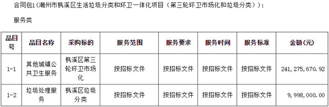 潮州市楓溪區(qū)生活垃圾分類和環(huán)衛(wèi)一體化項(xiàng)目(第三輪環(huán)衛(wèi)市場(chǎng)化和垃圾分類)